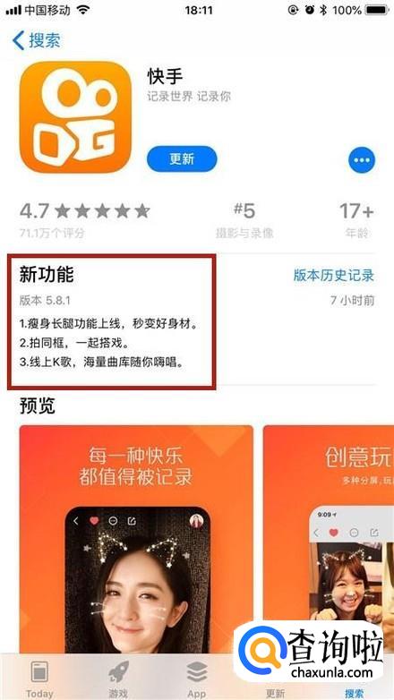 这样我们就可以查看到快手app的最新功能和最新版本的信息了。