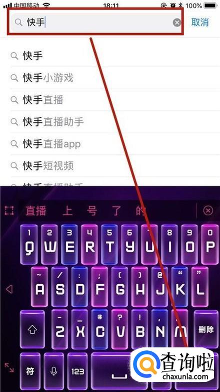 接着点击输入快手并点击搜索,如下图所示。