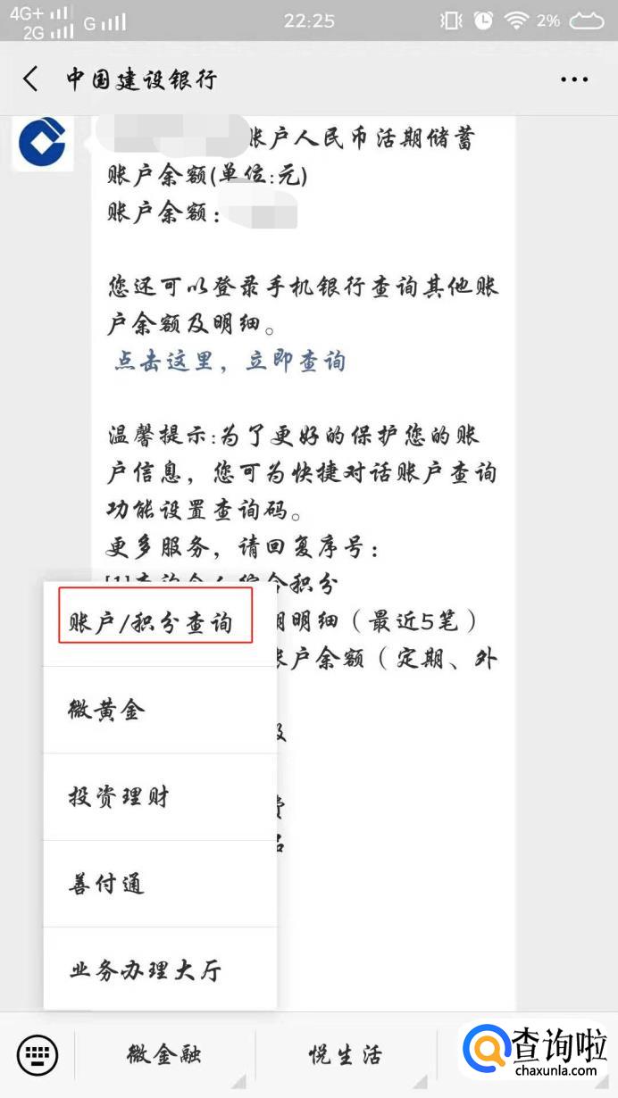 以后就可以直接进入微信公众号,点击【微金融】-【账户/积分查询】就可以查看到账户里的余额了,是不是很方便。