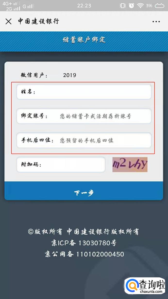 输入需要绑定的银行卡卡号以及其它的信息,点击【下一步】,这里直接点击【接受并绑定储蓄卡】当然也可以点击【接受并绑定信用卡】根据实际情况选择。