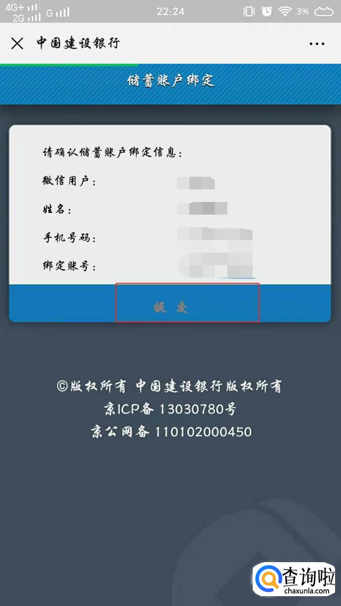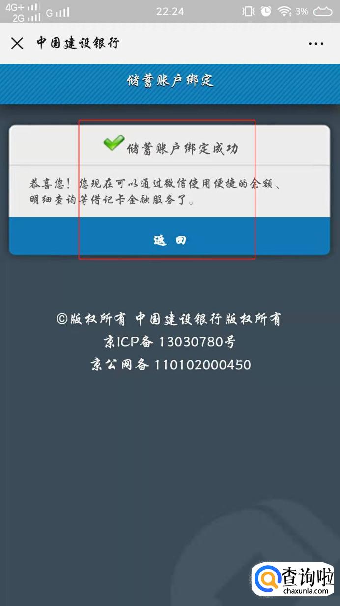 输入短信验证码,点击【下一步】,然后在确认储蓄账户绑定信息,点击【提交】,提交后就会显示【储蓄账户绑定成功】,点击返回就可以了,这样银行卡就绑定好了。