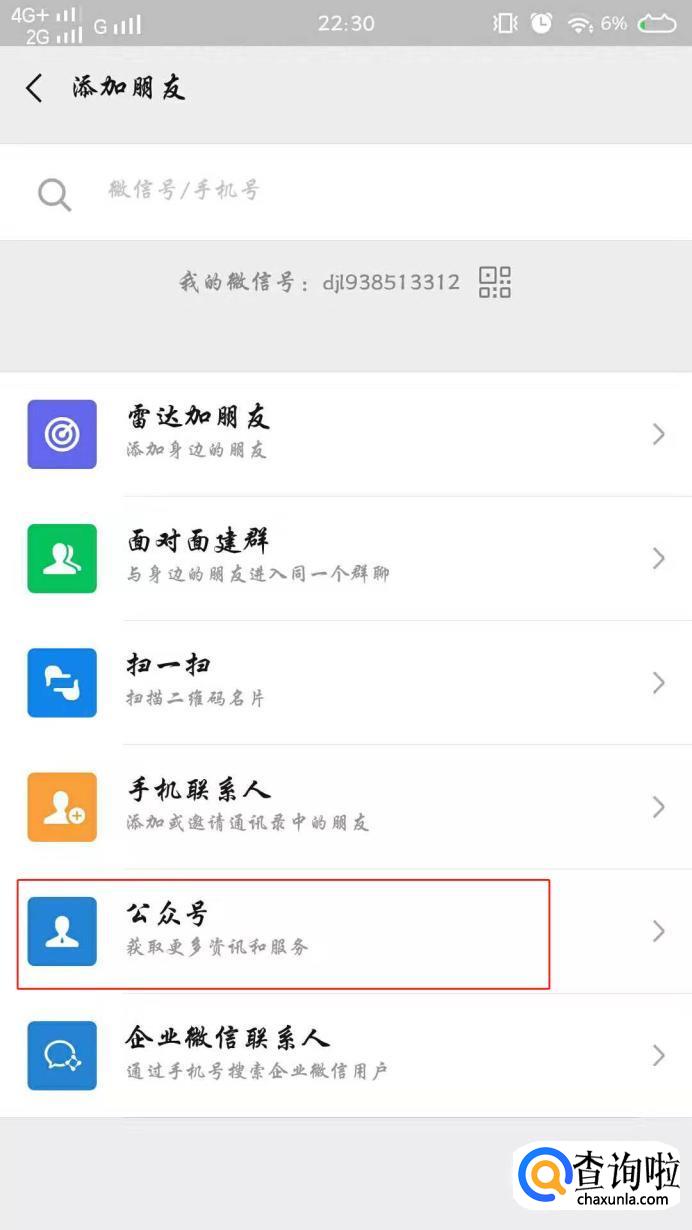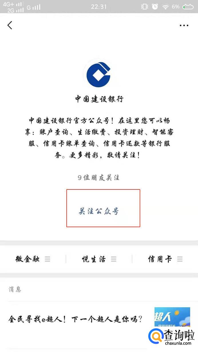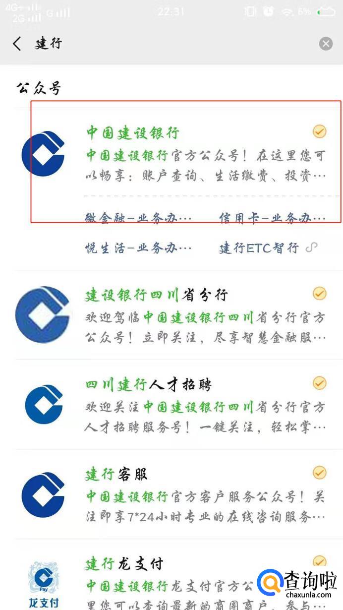 点击【公众号】这里以建行为例,在输入框搜索建行,点击建行公众号。
