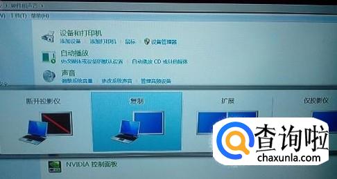 之后打开控制面板里硬件和声音里的连接到投影仪