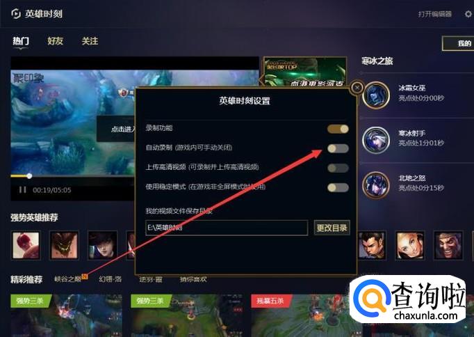 新版lol英雄联盟怎么开启英雄时刻自动录制