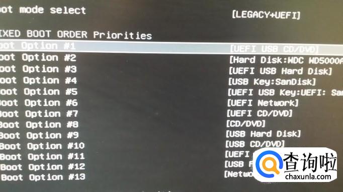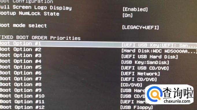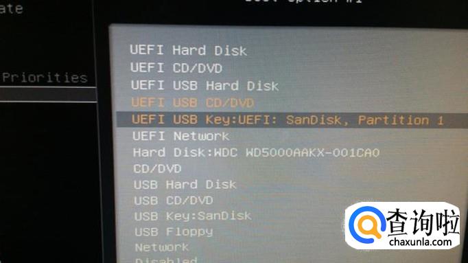 可以看到下面第一启动设备是“USB CD/DVD”,不是自己的U盘(sandisk),我们点一下这个选项。