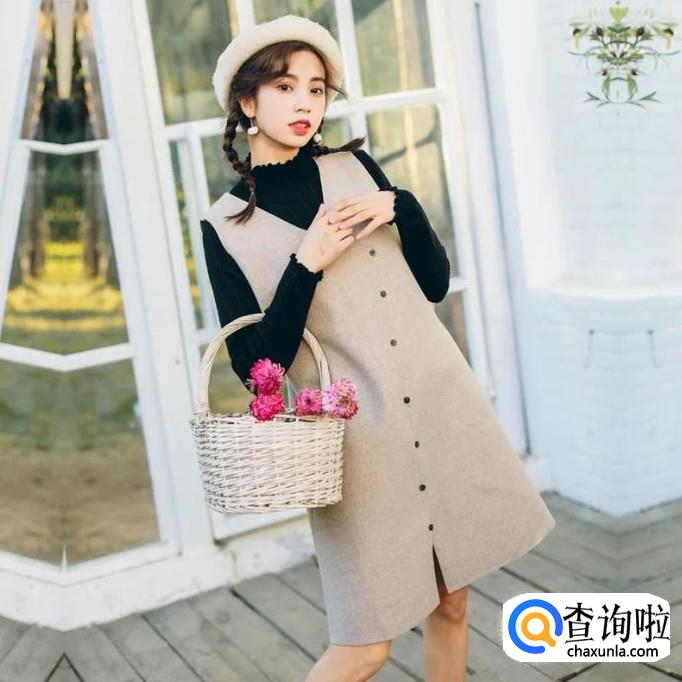冬季大衣内搭背心毛呢裙,青春又可爱,适合,学生以及青年女性。