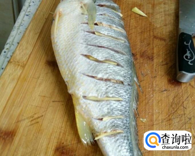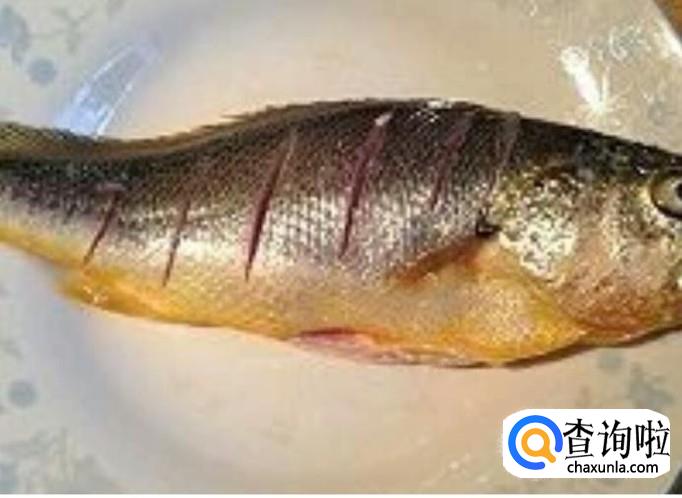 首先我们准备好黄花鱼,然后把它的鱼鳞和内脏清理干净,建议多清理几次,然后在它的身上化斜刀备用。