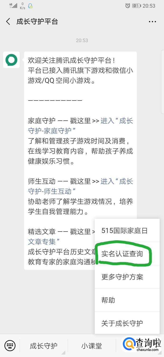 进入公众号之后,点击右下方的“帮助”,会出现一个“实名认证查询”。