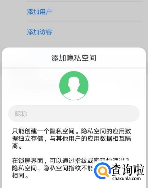 然后点击添加隐私空间,根据提示操作填写一个昵称。当你觉得桌面图标太多,也不想建文件夹归类整理的时候,也可以使用这一招,创建一个更加简洁的桌面!
