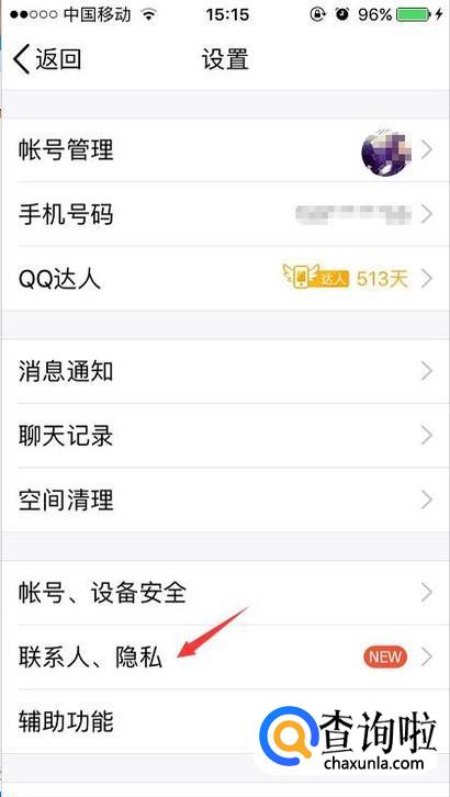 进入设置功能,底下倒数第二个是联系人、隐私,直接进入。