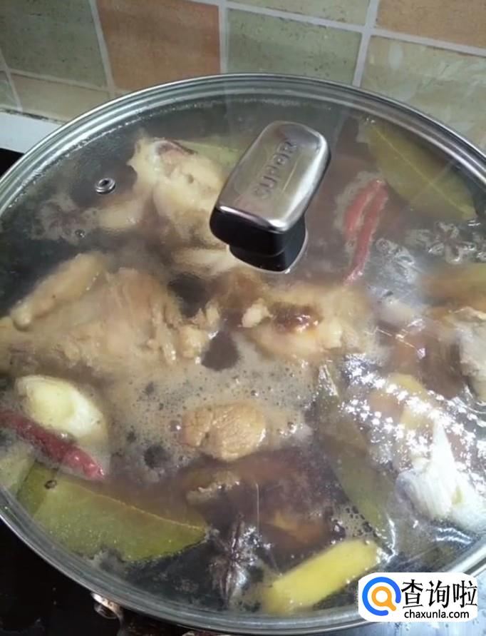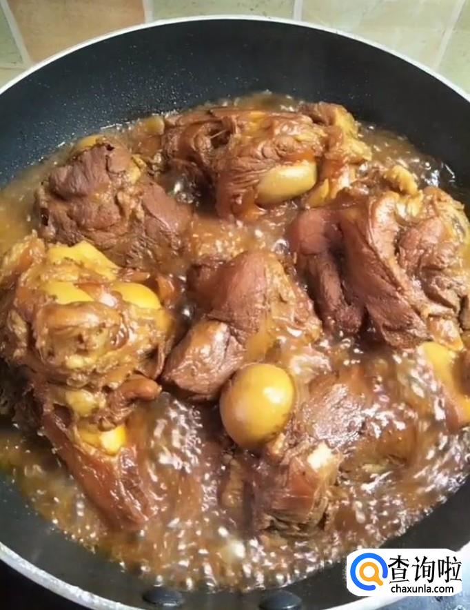 接着我们盖上锅盖,大火烧开转小火,炖50分钟,最后大火收干汤汁