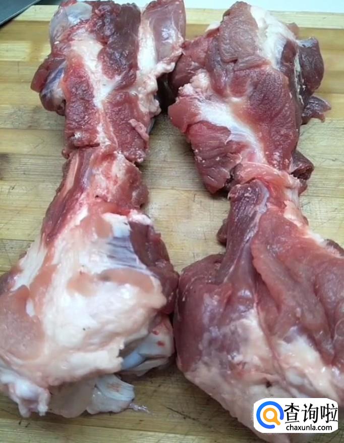 首先我们将大骨头用刀剁成两半,放入凉水中冲洗干净