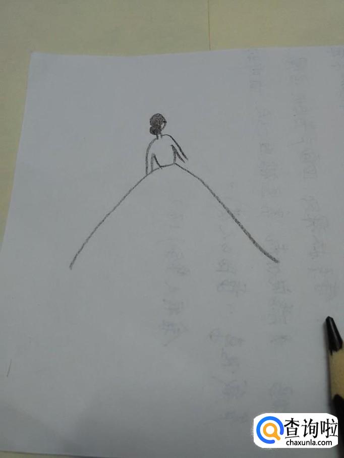 从人物的腰间画一条横道,然后向两侧画两条斜线,表示裙子的侧面。