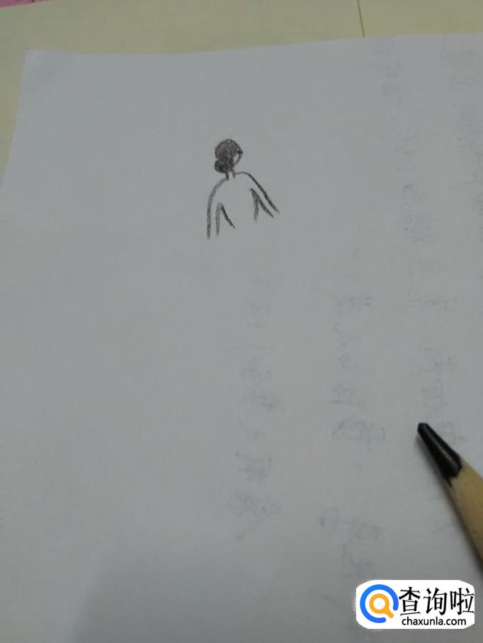 用黑色彩笔在纸上画两个相连的黑点,表示人物的盘发。