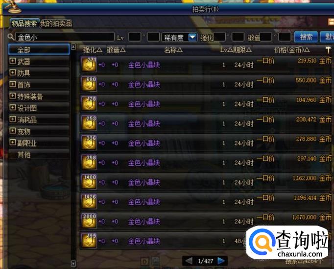 金色小晶块可以在分解稀有级以上的装备时概率获得,当然也可以直接在拍卖行中进行购买。