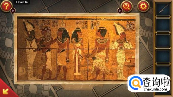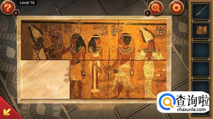 之后我们点击地图左侧的平台,我们会看到一幅顺序混乱而且少一块的拼图,先将它们按照顺序拼好,之后把捡到的拼块补上去,我们会看到门打开了一半,但是还是无法出去