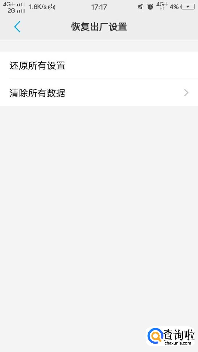 紧接着进入到相关页面以后,我们手动找到并且点击恢复出厂设置。