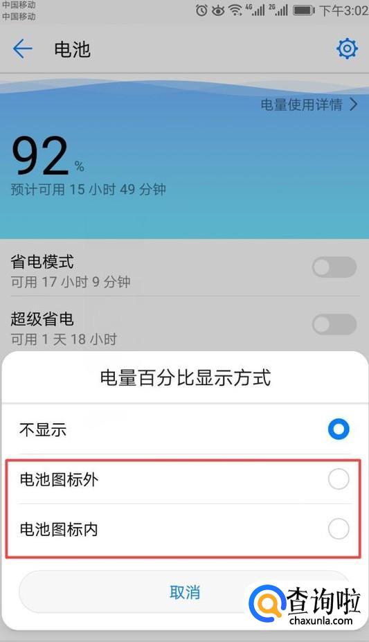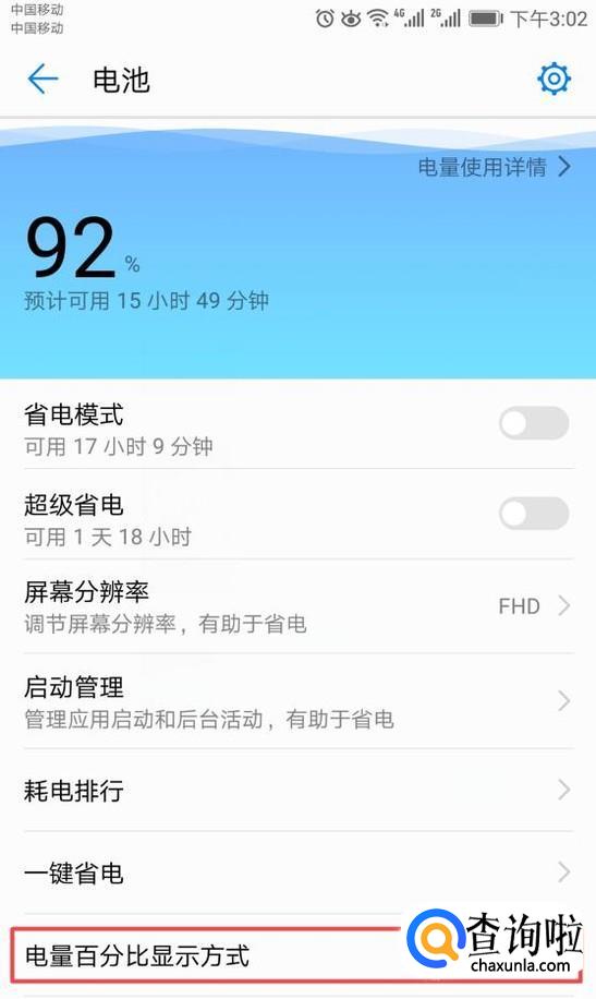 怎样在华为手机上找到电量百分百显示和怎样省点