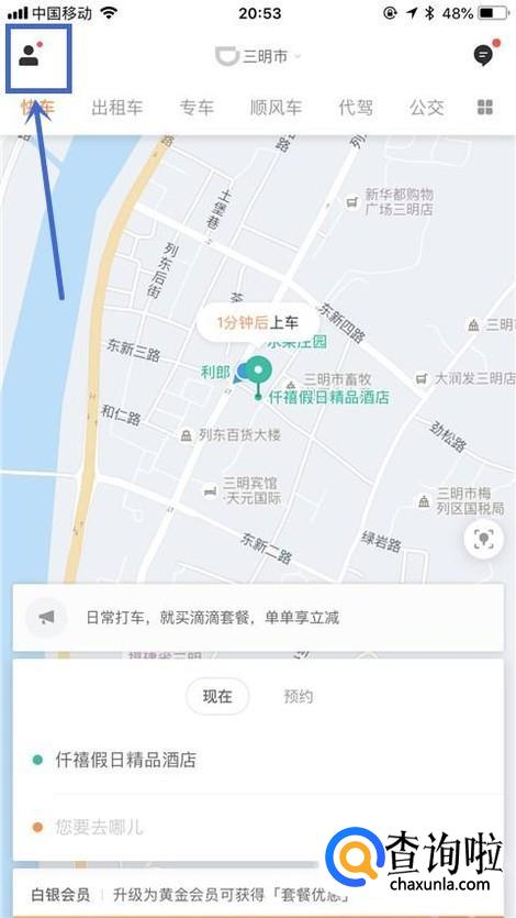 然后点击屏幕左上方的个人头像,如下图所示。