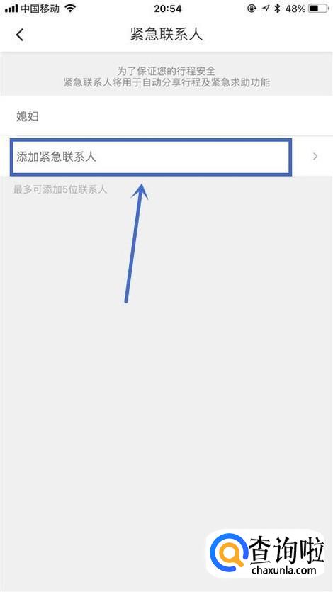 然后点击添加紧急联系人,如下图所示。