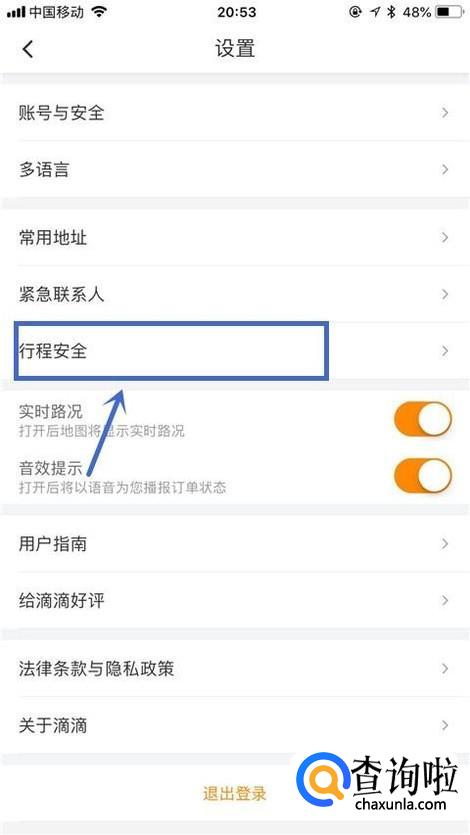 然后点击行程安全,如下图所示。