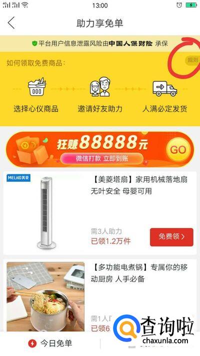 右上角有一个规则,如图,点击进去仔细阅读一下助力享免单的规则,以防做错,只有满足上面的条件,才能有收获哦。