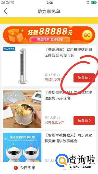 选择你想要的商品,点击{免费领}。