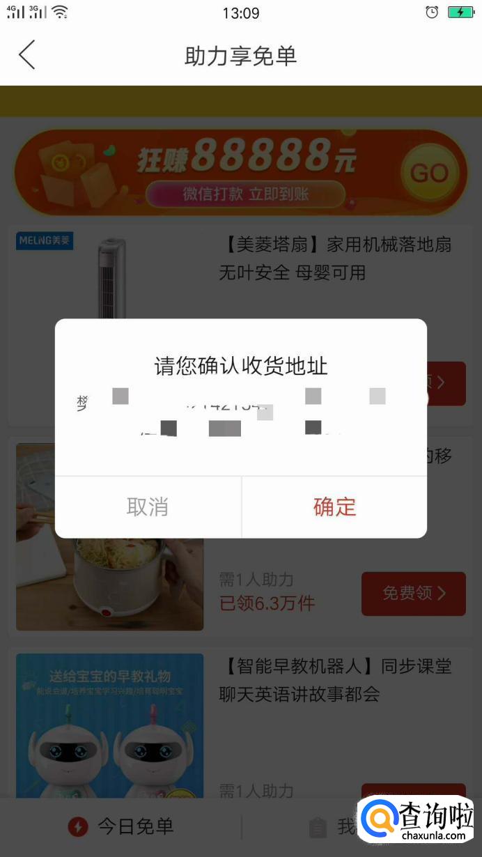 系统会让你选择你的收货地址,然后确认你的收货地址是否正确,如果正确点击确定即可。