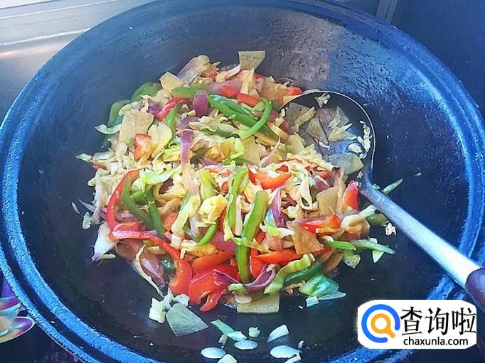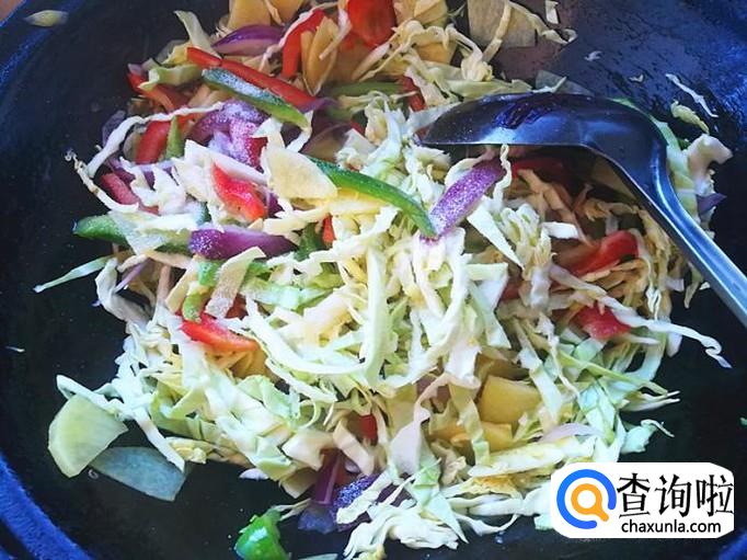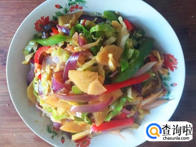 装盘,一道营养好吃的甘蓝青红辣椒炒土豆片就做好了。