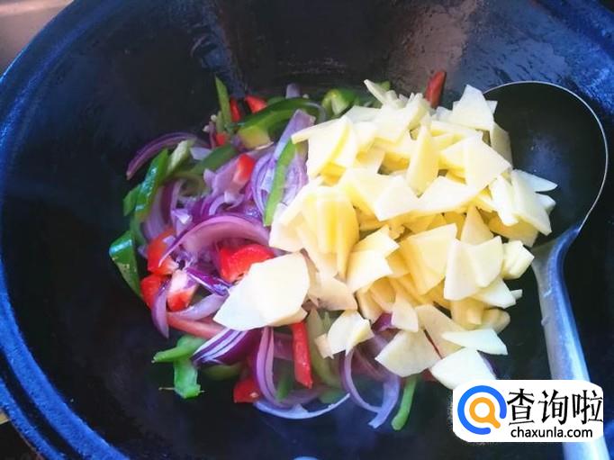 加入切好的土豆片和洋葱条一起翻炒入味。