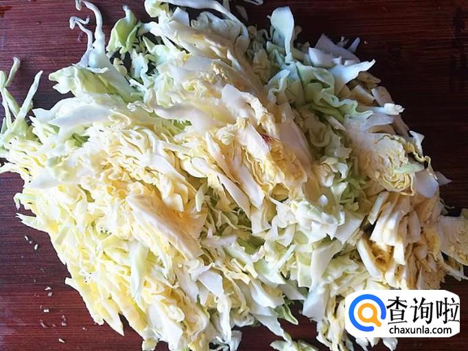 把切好的甘蓝和食盐等调料加入,一起炒烧入味。