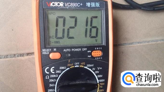 我们还可以像图中那样把万用表打到交流电压档来测量电源线的通断。