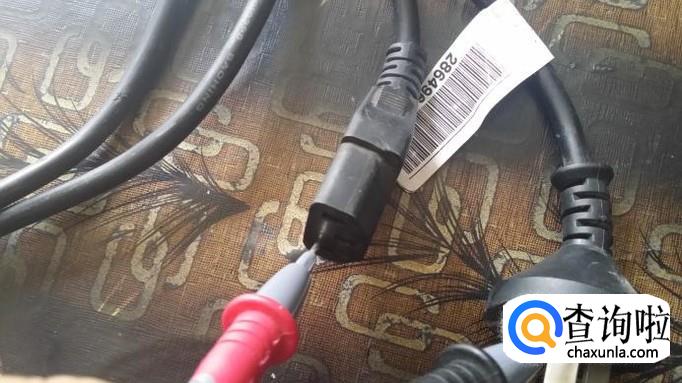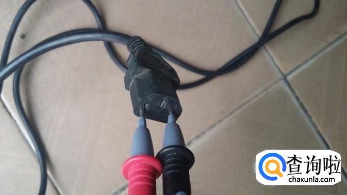 再来看看这根电源线的通断,我们可以用以上方法,一个表笔接触插头,一个表笔接触对应的插孔,很容易知道这根电源线的通断。