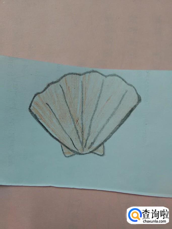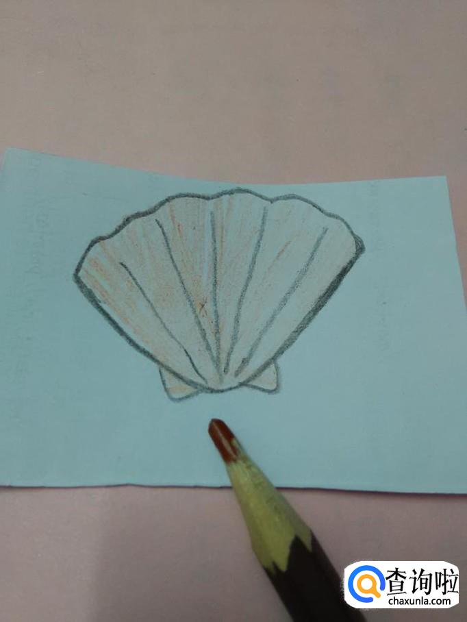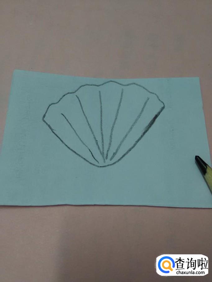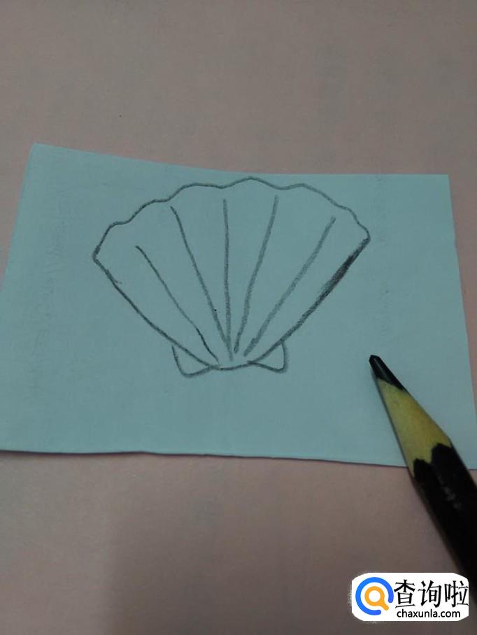 从波浪形边缘向贝壳根部画几条线,表示贝壳上面的条纹。