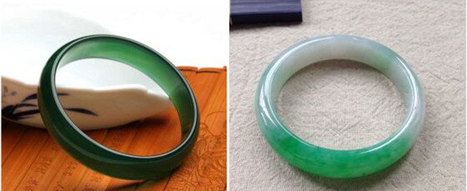 绿色形态:翡翠的绿色和白色界线很明显,并且绿色部分的水头很好;而玉髓绿色与白色的界线不明显,并且绿色部分的透明度与其它地方没有区别,玉髓色匀,基本不会深浅不一;