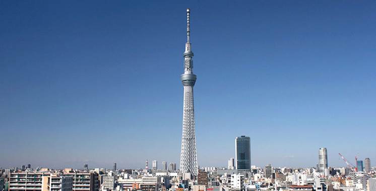 东京晴空塔是位于东京都墨田的一座广播观光塔,它在2010年成为日本最高的建筑,并在2011年3月达到634米的全高,取代了广州塔,成为仅次于哈利法塔的世界第二高建筑。