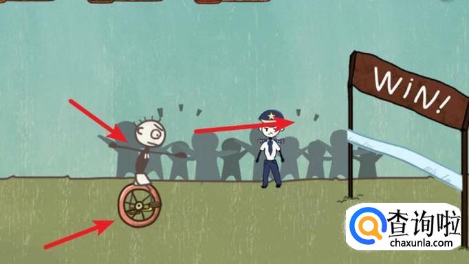 第17关,先点击几次轮子,让它变圆,然后点击人,就可以前进并顺利过关了。