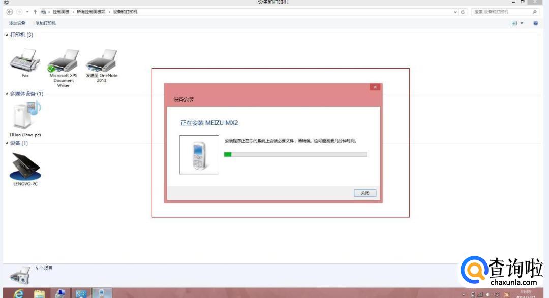 两台设备连接完成并配置好后,Windows 检查并安装必要的驱动程序。请耐心等待该流程的完成,然后再使用设备。然后点击“关闭”。