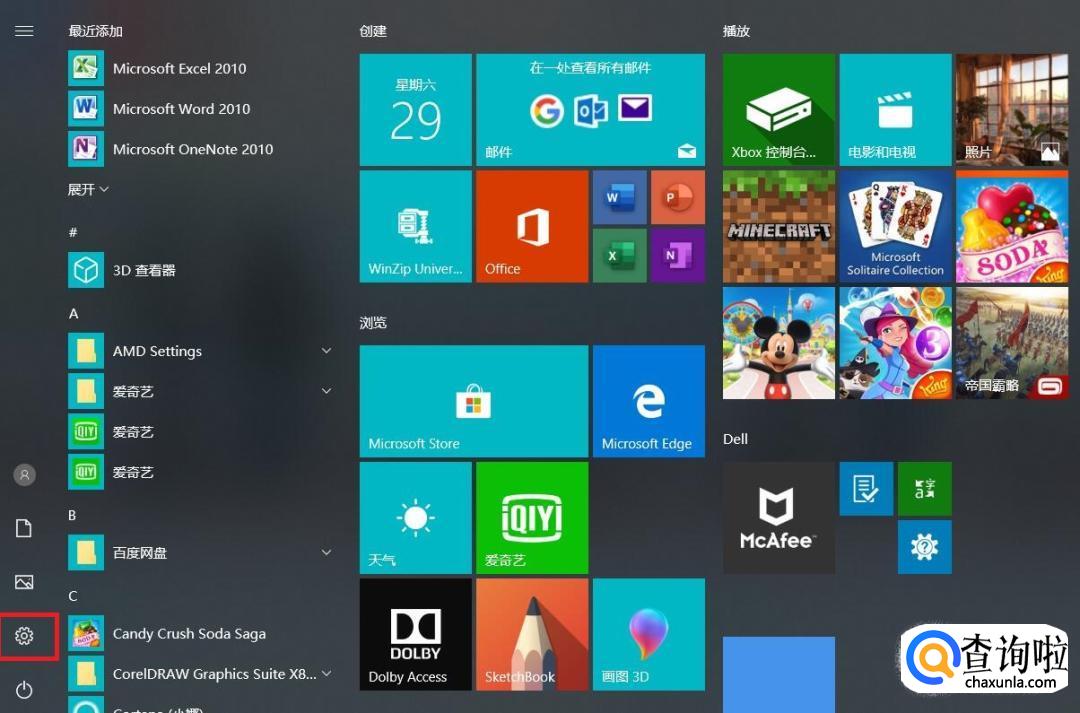 打开蓝牙,这里以Windows10为例,首先点击左下角开始按钮,侧边栏中的“设置”。