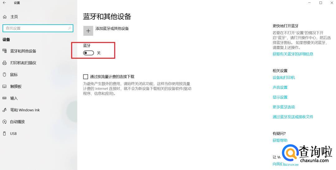 找到蓝牙和其他设备,将按钮滑至“开”。