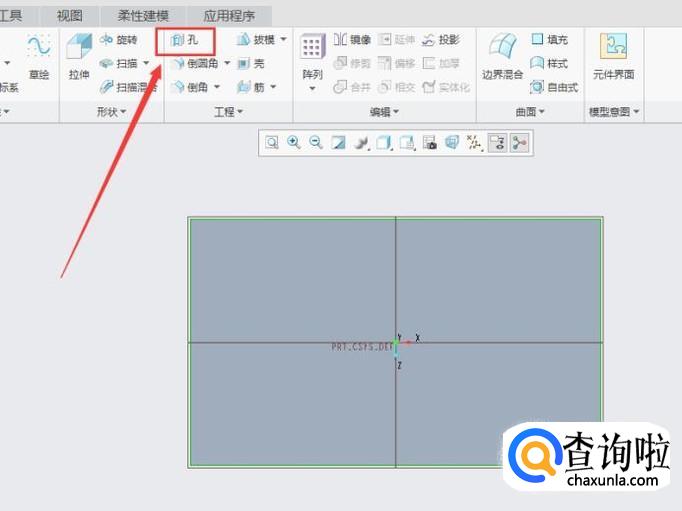 点击“放置”,选择进行孔操作的平面,如图所示。