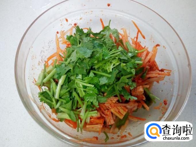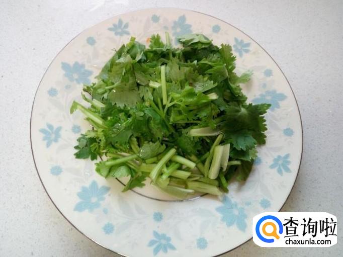 香菜收拾清洗干净,控干水分,切成2公分左右长的段。