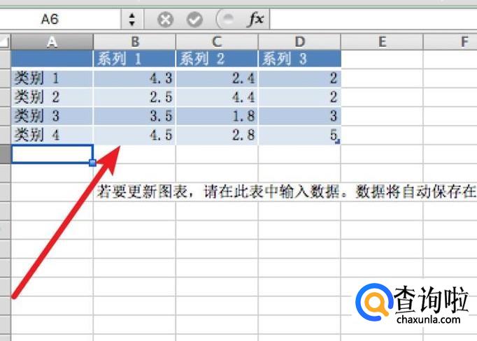 选择好后,会自动打开excel,在excel里,我们修改图形的数据,文字也可以修改,以适应自己图形的显示。