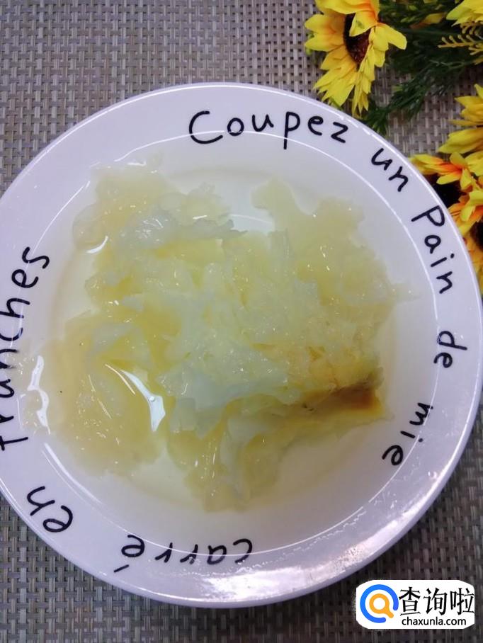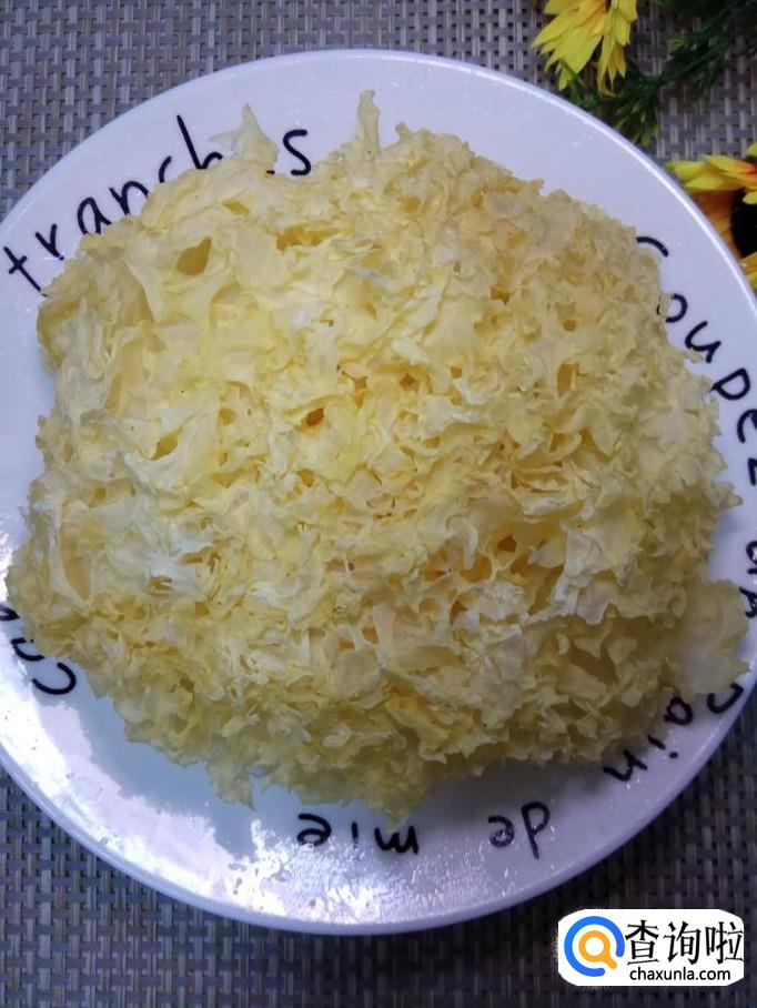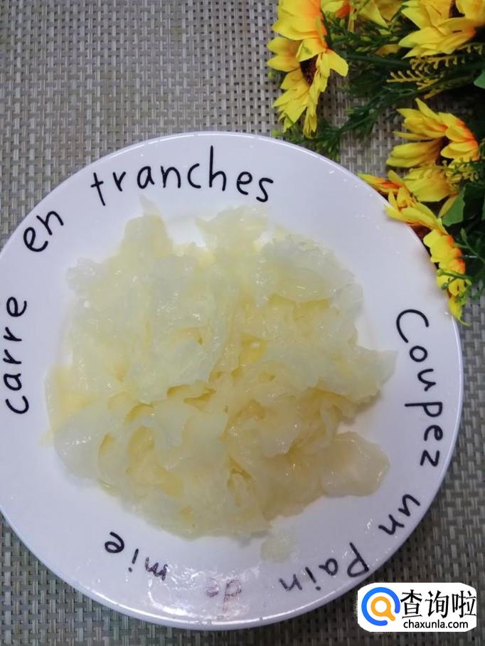 准备适量银耳,将银耳泡发,去蒂洗净,撕成小朵。