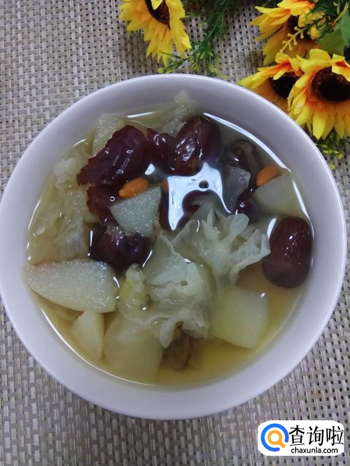 银耳适量,苹果适量,红枣适量,枸杞子适量,冰糖适量