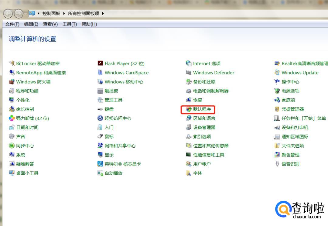 在控制面板里面找到默认程序。