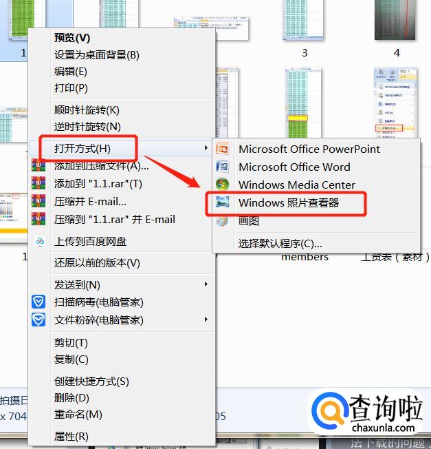 关闭对话框,选中图片,点击鼠标右键,在打开方式里面找到windows照片查看器。