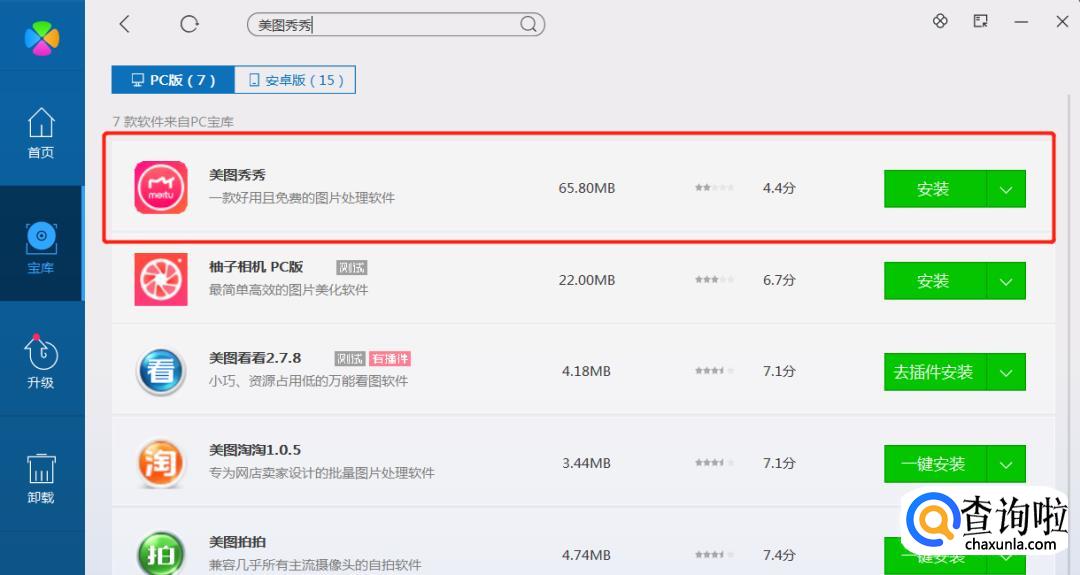 在搜索栏输入美图秀秀,会出现如下搜索结果。