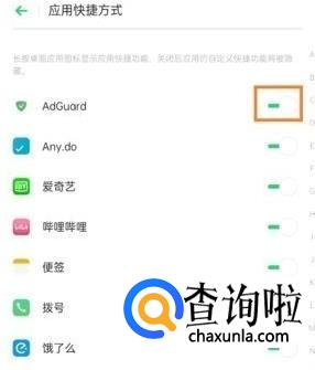 当设置中的“应用快捷方式”开关项开启时,长按桌面应用图标,出现此应用的快捷方式。