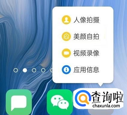 1、长按“相机”1s左右,弹出“应用快捷菜单”